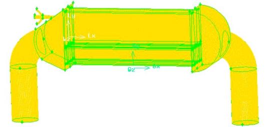 火電濕冷機組凝汽器結(jié)構(gòu)比較復雜,本文對凝汽器系統(tǒng)進行簡化,利用Gambit軟件對其建立物理模型如圖1所示。